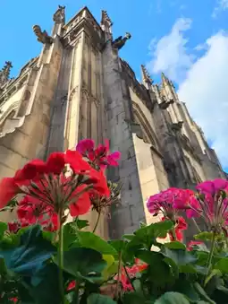 Manchester Cathedral stands serene and timeless, its Gothic spires reaching skyward while bursts of colourful flowers bloom around its base—like nature’s quiet tribute to faith and endurance. The surrounding gardens soften the stone architecture, inviting passersby to pause, reflect, or simply admire. Just steps away, the Arndale Market hums with a different kind of energy: vibrant stalls, sizzling street food, and the chatter of city life. Between sacred stillness and urban rhythm, this corner of Manchester offers a poetic contrast—where blossoms meet bustle, and history breathes beside the everyday.