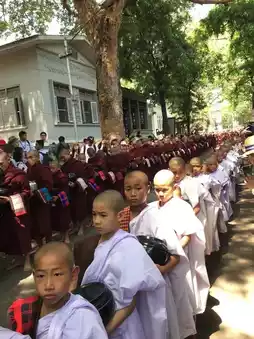 Mahagandayon Monastery, also known as the Thousand Monks Monastery. It is the largest monastery in Myanmar. Every morning, tourists from all over the world gather here to witness the shocking scene of thousands of monks having meals together. There are no restrictions on vegetarian or non-vegetarian food in Myanmar's monasteries, and the monks eat whatever they receive as alms. There are two meals a day, at 4am and 10am, and only water can be consumed outside of these times.