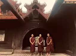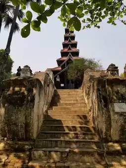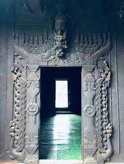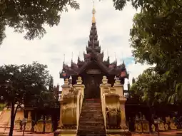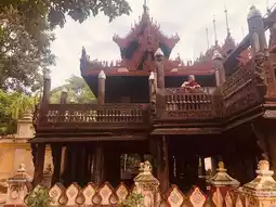What a surprise! I did not have this monastery in my original plan while visiting Mandalay! I hired a private driver, and he told me that I had to see it. The monastery is located in central Mandalay, close to the Buddha manufacturing stores and the Jade market. It is on a congested street. However, it was easy to park. There is no entrance fee. Once you pass the entrance, you will be amazed by the monastery's delicate details. The monastery was commissioned by two wealthy jade, Chinese jade merchants in 1890. It is made of teak. It is a Konbaung-style monastery (similar to Shwenandaw). The main tower is beautiful. It has seven tiers of roof. The construction has impressive carvings, the carvings are very well-preserved, and the construction is splendid! The place is very calm, and the surrounding gardens are nice, and the floors are very clean. There is no entrance fee. Once you leave, you can wash your feet with water coming from a small, old cistern located close to the entrance. The mechanism of water extraction is original and really impressive. It was a beautiful day in Mandalay. The place is magical.