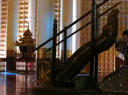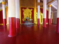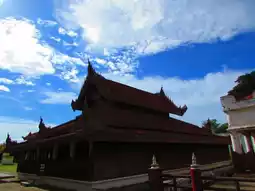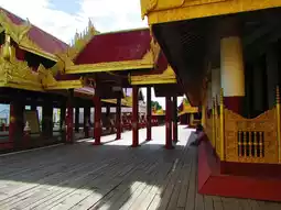 Inside was the Palace, which was destroyed in wars, more so during World War II when it was occupied by the Japanese and was bombed by the Allied Forces. Before destruction, its monastery, built from teakwood, was shifted outside the walls and is the only original survivor of the old Fort. The Royal Palace Monastery, below the Mandalay Hill, is the most famous attraction in the city.