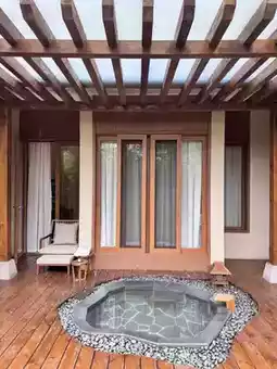 I stayed in a private courtyard room with hot spring - step outside and there's your personal garden with 24-hour hot spring access. Soaking under the stars at night, then wrapping up to go eat before sleeping like a baby - haven't had such good rest in ages!