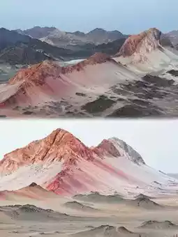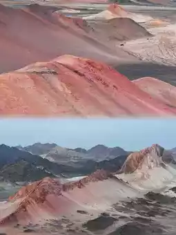 🌟Pinkish-white gravel, from a distance the whole mountain appears pink, also known by netizens as Rainbow Mountain, Rouge Mountain😍