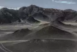 - Panorama: Climb the hillside for overhead shots of the black and white contrasting land and road (focal length 70-200mm).