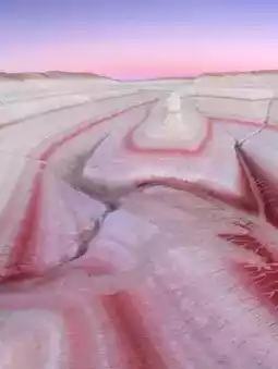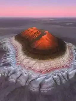 Located on the Mangyshlak (Mangystau) Peninsula by the Caspian Sea, these surreal, multiâlayered chalk hillsânicknamed âTiramisuâ, Mount Bokty/Bokhty, or Bakty Mountainâresemble a layered cake painted white, red, yellow, coral, and ochre.