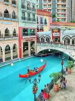 🛶 Venice Grand Canal Mall – Float in a gondola, shop European-style boutiques, or sip coffee by pastel buildings in Taguig.