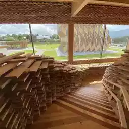 Tourist attractions: Art that suddenly appears in the great outdoors. Kengo Kuma's architecture stands out against the blue sky and the background of the Hiruzen Plateau, making it the best photo spot!