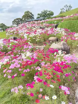 Manno Park is now in full bloom with 170,000 cosmos flowers of six different varieties. The vast grounds are adorned with colorful cosmos, making it a must-visit spot in autumn.