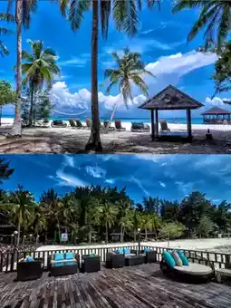The scenery is beautiful, with a large beach. All you can see is the green sea and white beach. At night, you can see the stars and the Milky Way in the night sky. There is no light pollution, which is very surprising and shocking.