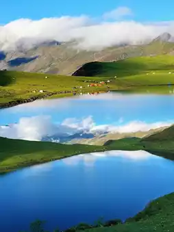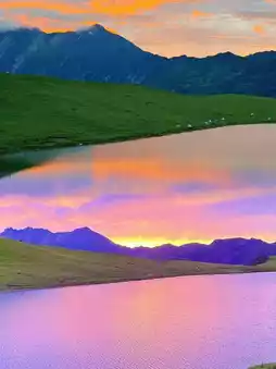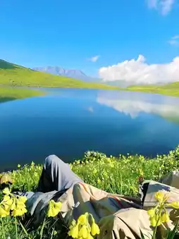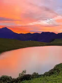 A mysterious lake surrounded by mountains, perfect for watching the sunrise🌅
