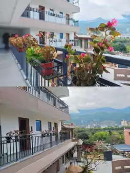 The hotel is located in Baishi Qiang Village, not far from Maoxian. The four-story building has a small courtyard full of flowers and plants. The quiet and tidy environment is very appealing.