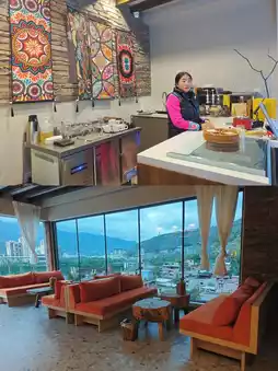 The fourth floor of the hotel is a dining room and a coffee shop, which is very tastefully decorated. The ethnic features give it a unique style.