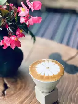 While waiting for dinner, we sat in the coffee shop and chatted. The owner is a Qiang girl. She wore traditional clothing and made coffee, and her latte art was pretty good. ☕