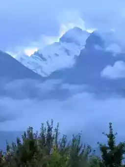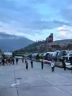 Get on the bus at 7 am the next day. The team must first visit the Qiang culture in the nearby Ancient Qiang City of China (40 yuan/person) before going to Dujiangyan. The Sichuan U A1598 bus stopped in a large parking lot. The tour guide Xiao Guo said that the original appointment needed to be rescheduled. He went to the Qiang village to queue up for communication, while everyone was enjoying the scenery in the parking lot. We all got off the car. In the distance, the mountains dozens of kilometers away were shrouded in clouds and mist, occasionally revealing their true appearance. After a while, I learned that the high mountain in the distance (the highest peak is Lion King Peak) is called Jiuding Mountain (Jiuding Mountain), with an altitude of 4,989 meters. Its unique scenery integrates grasslands, snow-capped mountains, virgin forests with natural landscapes such as Buddha's light, phantoms, sea of clouds, geological landscapes, and celestial landscapes. It can be said to be a natural museum of geological wonders.