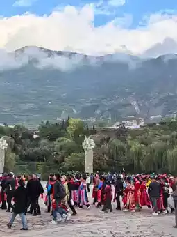 After waiting for an hour, we were finally able to enter the village. We lined up at the designated location, and then suddenly, a young Qiang woman from Ermalaye came. She was wearing Qiang costumes and a headdress that looked like a tile on her head. Coming to a corner of the Qiang Culture Square, she pointed to the Ancient Qiang City of China, a man-made cultural landscape. After the Wenchuan earthquake in 2008, the government spent 1.2 billion yuan and used 3,000 acres of land to build an ancient Qiang city and an intangible cultural heritage site. When traveling among the Qiang people, 30% depends on seeing and 70% depends on listening (Teams No. 70 and 28 together). This square is where events are held during major festivals and events. There is a large statue in the center of the square, called "Song in the Clouds". The sculpture depicts an old shepherd standing in the clouds and playing the Qiang flute, with sheep nestling beside him. It vividly reproduces the core elements of Qiang culture, from sheep to people, and embodies the harmonious coexistence of man and nature. There are four large pillars on both sides of the square, representing that when one side is in trouble, all sides will come to its aid. There is a sheep head carved on the top of each pillar. The sheep head is the mascot of the Qiang nationality. The word Qiang means a person who herds shepherds. The Qiang people are the earliest sheep-herding people from ancient times to the present. We worship the sheep's heads as a symbol and totem of the Qiang people. Our nation has a very nice nickname, which is "the nation on the clouds". Everyone stood here and looked in the direction of A-mei's finger. The white houses under the clouds on the hillside of Jiuding Mountain were where our Qiang people lived. They did not move after the earthquake, but rebuilt on the original site. To this day, the Qiang people still live in the mountains... We are blessed by the earthquake. Before the earthquake, the Qiang people were very poor and backward. They lived in the mountains and had no contact with the Han people. After the earthquake, the country built the ancient Qiang city. When you go to Huanglong and Jiuzhaigou, you almost have to go back to Maoxian. This is a must-pass place and also a tourist attraction. The government wants to help the Qiang people get rid of poverty and become rich through tourism. What makes us, the Qiang people, different from other ethnic groups? People like the Uyghurs, Miao and Tibetans can be found in many places in China. Only the Qiang people live in Maoxian, Wenchuan, Beichuan and Lixian. There are only about 300,000 people in total. In the great earthquake, the Qiang people suffered the most casualties. But our nation can hold on. The Qiang people are the oldest. Many ethnic groups have Qiang blood flowing in their veins. The Qiang people are a nation that transfuses blood to the outside world. That is why the Chinese are called the descendants of Yan and Huang. Who are the descendants of the Han people? They are the descendants of Huangdi, while the Qiang people are the descendants of Yan Emperor, who existed even earlier than Huangdi. Therefore, the Qiang people have a long history. When you come to Maoxian, you will find three treasures here and the Qiang people have four unique things. Three treasures: fruit, Dahongpao peppercorns, and a yak horn comb. Yaks grow on plateaus and have a cool nature. The head should be cool and the feet should be warm, so combing your hair is beneficial. Four unique wonders: Qiang Diao (Diaolou), Qiang flute, Qiang embroidery, and Qiang silver (silver worn by Qiang people). These four intangible cultural heritages represent the essence of Qiang culture. A Qiang woman holds up a tile, which means she holds up the sky! The Qiang people are not as passionate and heroic as the Tibetans, but rather an introverted, rational and hardworking people.
