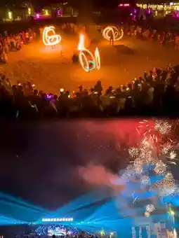 The room is relatively large, the equipment and bedding are very new, the hot spring is a real hot spring, the hot spring pool is very large, it is on the balcony, there are performances on the terrace at night, you can watch the performance while soaking in the hot spring pool.