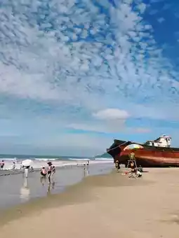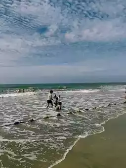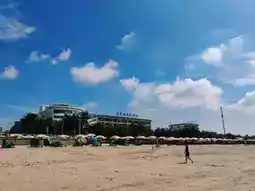 The coastline is very long, and the sand is very fine and soft, with many children playing in the sand. But the sun is very strong βοΈ, so be sure to apply sunscreen. Few people go into the sea, and there are lifeguards on the shore.