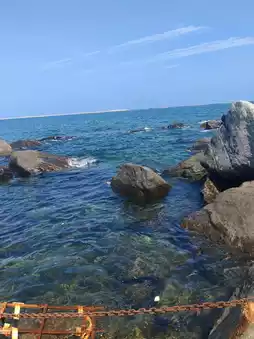 We headed toward the rocky area, where the water was exceptionally clear, blending seamlessly with the sky—a breathtaking view, especially on a sunny day.