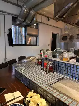 Cozy and clean interior, able to watch the cooking process from the teppan seats