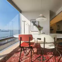 The soft music and modern interior, especially the unique lights and Braun Design Collection, stand out!