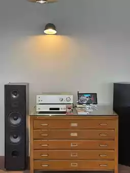 The combination of exposed concrete, white walls, and dark wooden furniture creates a sophisticated yet warm and cozy atmosphere. It's a modern space that still feels inviting 🤍🌿