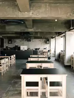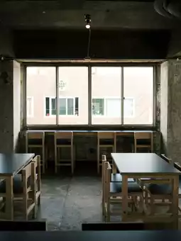 Tiltdown is a cafe with a rugged interior design that still exudes a calm and comfortable atmosphere☕. It's a clean and minimalistic space, making it perfect for focusing quietly on something 📚✨.