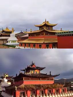 Lari Temple is the dojo of Avalokitesvara Bodhisattva. The temple has major buildings such as the Yinming Academy, the Indian Eighty Great Accomplishments Hall, and three Sutra Halls. It has a reasonable layout and unique ethnic characteristics. There are more than 30 prayer wheels of various sizes, 111 pagodas, 4 stone scripture walls and prayer flags covering an area of about 80 acres in the temple, showing a strong religious atmosphere and rich cultural heritage.