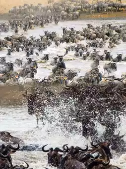 Every year from July to September, millions of wildebeests, zebras, and gazelles cross the Mara River, staging Earth's most breathtaking survival epic! Northern Serengeti in Tanzania (Kogatende area) is the prime viewing spot for this phenomenon. Compared to Kenya, the crossings here are grander, with fewer tourists, making the experience utterly awe-inspiring.