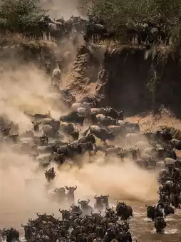 ▫️Hot air balloon over animal migration → god’s eye view of wildebeest herds running