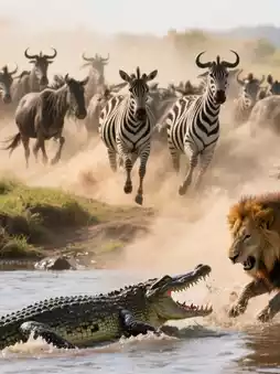 🐎Millions of wildebeests galloping across the river right before your eyes, crocodiles suddenly leaping out of the water to bite, lions 🦁 sprinting to hunt... every day is a live-action version of "The Lion King"✨