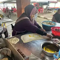 🍴Warong Nur Iffah’s pancakes are made by a local Malay pancake chef from Terengganu. This is relatively rare on the west coast of Malaysia. Most pancake chefs on the west coast are Muslim Indian chefs, so when you come to the east coast, you must taste the different flavors.
