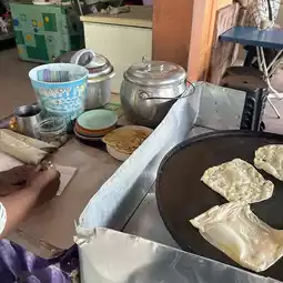 The pancakes are made to order, crispy and delicious, and paired with a special curry sauce, they are very tasty. In addition to the shuangbing, the vendors also sell other cakes and local snacks.