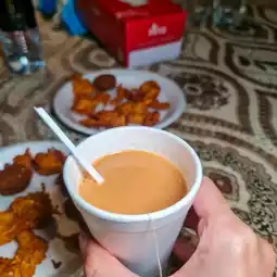 💕 What's good about VIP? I have to say that They really do it. Water, food, dessert, bring it in before the food line outside opens. You can ask for more. Someone will bring it to you. The food is not bad. There is naan, spaghetti, chicken curry, beans, vegetable salad. The dessert is sticky rice with sweet sticky rice. The best thing is the hot milk tea. Their milk is really rich and delicious. The air conditioner is also bitterly cold.