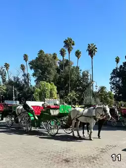 The most popular tourist attractions are horse-drawn carriages called "Kuchis". The bus stops at Jemaa el Fna Square.