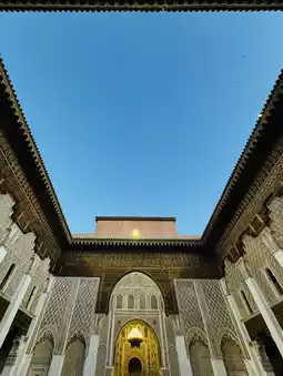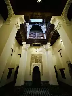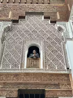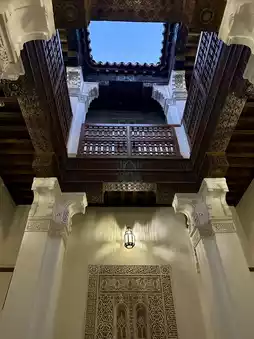 As I walked through its grand entrance, I was immediately struck by the intricate stucco carvings, zellige tilework, and cedarwood details. The central courtyard, with its marble fountain and geometric patterns, was simply breathtaking—a perfect blend of Moroccan and Andalusian artistry.