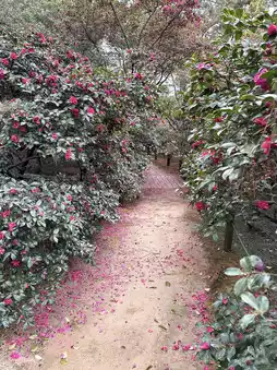 We went in March, so we were able to walk along a path covered in camellia flowers.