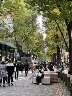 Located between the Marunouchi buildings, this street in the middle of the road transforms into a public space that changes with the seasons.