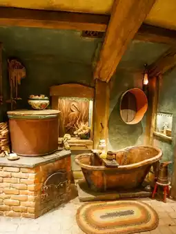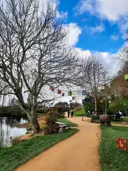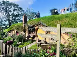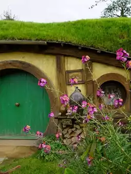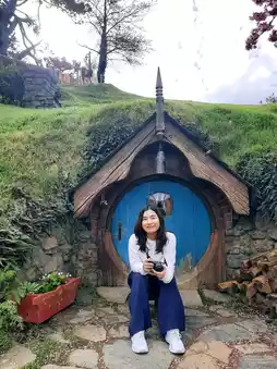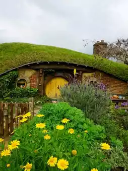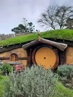⛺️🏕 This is the Hobbit village where The Lord of the Rings was filmed. Every corner is so adorable. The guide said that some of the big trees are fake, but most of the interior is fake, but you can hardly tell. It's like stepping into the movie. There's the brightly colored hobbit house, which even a small person like me could actually live in! 😆 There's a small flower garden, or at the Green Dragon Inn, you can enjoy a drink just like in the movie, as they offer a free glass of delicious ginger beer per person.