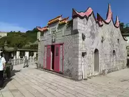 The temple combines traditional Matsu and Min Dong architectural features. Though its exterior is not extravagant, it embodies deep local culture. With stone bases and walls, swallowtail ridges, and flying eaves, the design is further accentuated by vibrant red flame-shaped firewalls, making it truly unique.