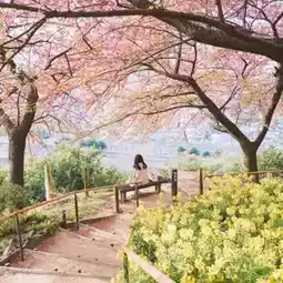 To be honest, it will use up a lot of physical strength, but the view from the top is spectacular, so enjoy the climb while looking at the cherry blossoms ☺️