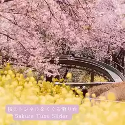 There is a large slide on the slope with a good view, and you can slide between the rows of cherry blossom trees 🛝
