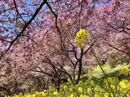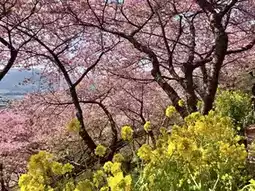 The combination of fully bloomed Kawazu cherry blossoms and vibrant yellow rapeseed flowers is indescribably beautiful! What makes this place truly special is the breathtaking view of Kawazu cherry blossoms with Mount Fuji in the background. It's a feast for the eyes that leaves both locals and visitors from around the world in awe. Everyone eagerly takes photos to capture this stunning scenery, creating unforgettable memories. The beauty of the moment is so moving that it touches the heart deeply! 🌸🗻📷👍🏼💯😍