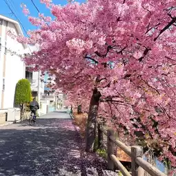 Getting to Matsudo Kawazu Cherry Blossoms is quite easy. Take the JR line to Matsudo Station, then walk towards Matsudo Shrine. It's just a five-minute walk, making it very convenient. The small stream beside the shrine is where the Kawazu cherry blossoms are in full bloom. On weekends, there are festivals and cosplay photoshoots, adding to the fun experience.