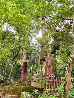 In order to defeat the Yamata no Orochi, a double fence was built in Sakusame-no-Mori, where Kagami-no-Ike pond is located, as a hiding place for Inadahime-no-Mikoto.