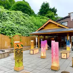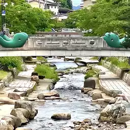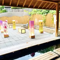 You can enjoy a foot bath while following the objects, and you can also see the giant magatama object on Magatama Bridge.