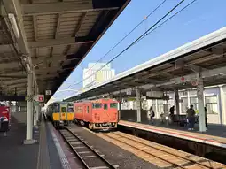 Matsue Station is the transportation hub of Matsue City, Shimane Prefecture. It serves the JR West San'in Main Line, and all passenger trains, including limited express and sleeper services, stop here. It's a great starting point for exploring Matsue and the San'in region. The station is elevated, with two island platforms serving four tracks. It features a "midori-no-mado-guchi" entrance, automatic ticket machines, and a stationmaster for convenient access. The station also houses the Shamine commercial facility, allowing passengers to shop and dine before boarding. In 2025, the waiting room was renovated to the "Yakumora-undi" design, inspired by the new "Yakumora" limited express trains, combining a modern feel with comfort.