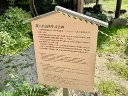 Dr. Takigawa dedicated his life to the study of Chinese classics. His magnum opus, "Shiji Kaichu Kosho" (Annotated and Verified Records of the Grand Historian), is considered the most comprehensive and meticulous commentary on the "Shiji" (Records of the Grand Historian) and is regarded as an immortal masterpiece in the global academic community. His research laid the foundation for modern Oriental studies. To commemorate his achievements, a monument was erected at his former residence in 1975 (Showa 50). The inscription was written by Kojiro Yoshikawa, an honorary professor at Kyoto University, and calligraphed by Tamaki Ogawa. The monument is made of natural stone from Aoki-cho, Marugame City, Kagawa Prefecture, exuding solemnity and elegance.