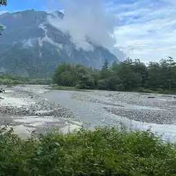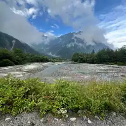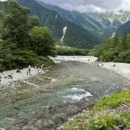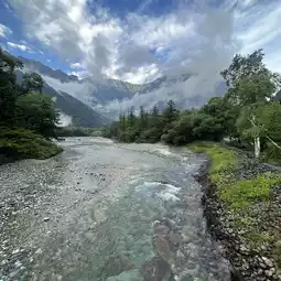You can see Mount Yakedake when you look downstream