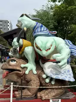 This is the Nakamichi District in Matsumoto City situated in Nagano Prefecture, Chubu region. It is a small and quaint city surrounded by snowy mountain alps. This is a good base for trips into the Japanese alps like the Kurobe-Tateyama Alpine route and Kamikochi. They have small traditional shops along an old street and the street is nicknamed the “frog street”. There are many different frog statues and even a Frog shrine! Just how unique and interesting is that?! Apparently, in the past, construction of Yohashira Shrine and businesses improved, allowing people to buy items and return home after worshipping. The two acts sound phonetically identical to the word for frog (kaeru) in Japanese, thus spawning the street's colloquial label. Today, a frog statue stands at the entrance to the street to protect the businesses.