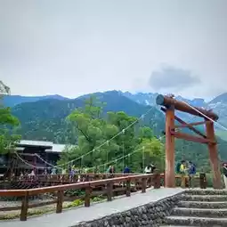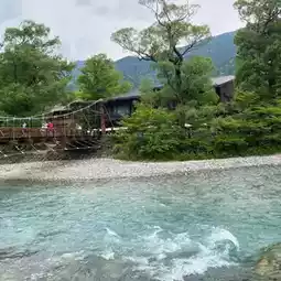 This is a nature lover's paradise, filled with beautiful views of the Japan Alps ⛰️ Bright blue sky ☁️ Clear rivers, green trees, fresh air, and a sense of peace and tranquility, as if you have been transported to another world. It is famous for its beautiful scenery, like a painting.
