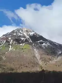 It is a large pond with a beautiful turquoise color like a painting. It was created by a volcanic eruption in the past, resulting in a unique and beautiful landscape. The clear water in the pond clearly reflects the surrounding mountains.